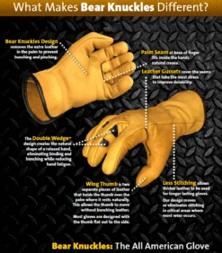 ‘Bear Knuckles’ Double Wedge™ Fleece-Lined Water Resistant Cowhide Driver Glove – Yellow