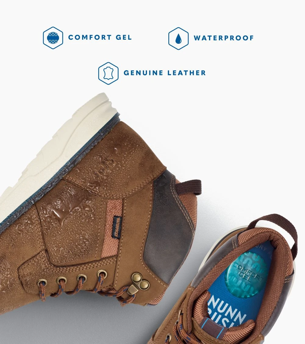 Never let the weather interfere with your plans. Be prepared with the proper practical yet stylish shoe/boot. The Luxor features a subtle two-tone midsole and seam-sealed waterproof leather upper along with a Comfort Gel footbed and Softgel heel pod.