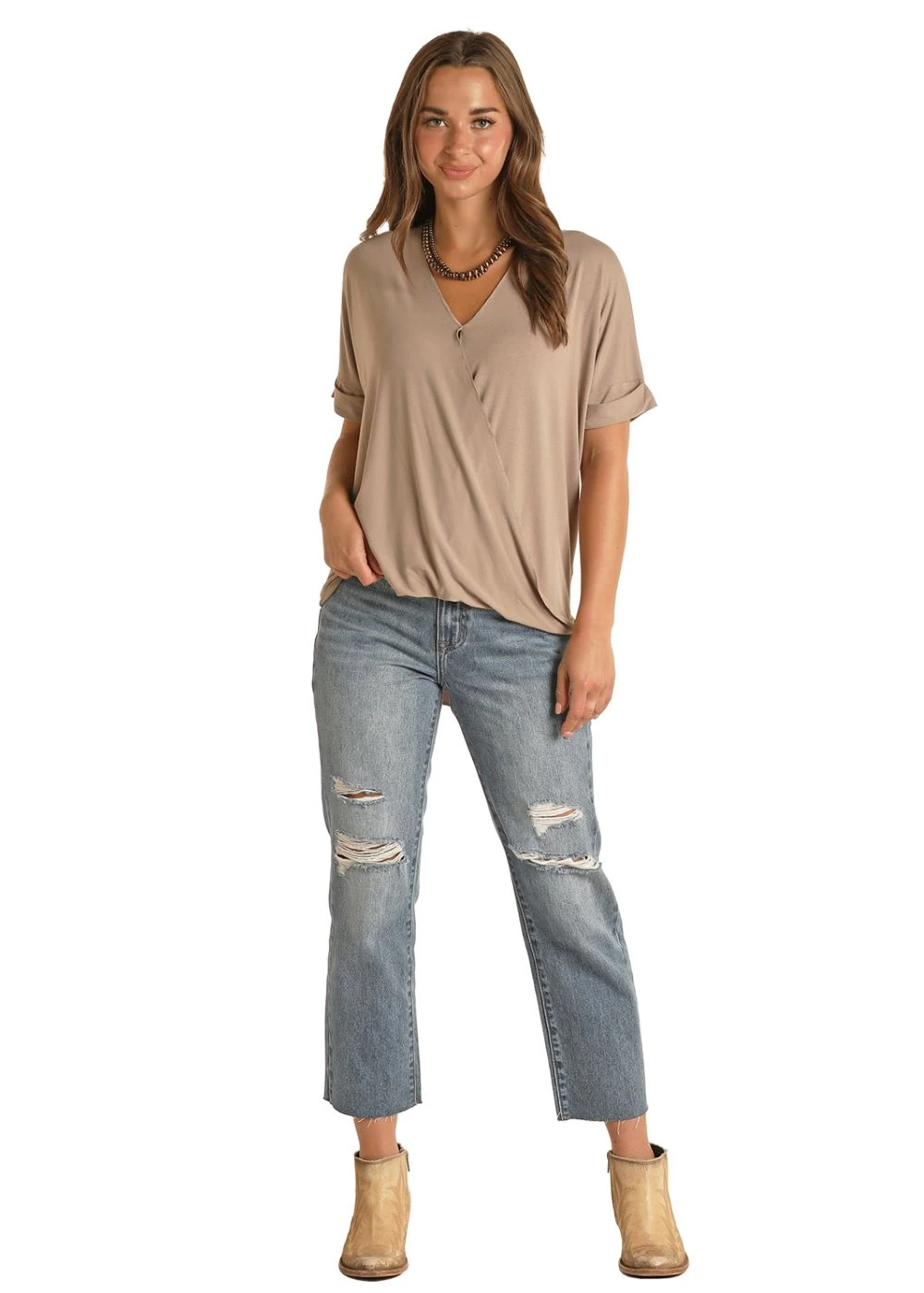 Dress up your favorite jeans by slipping on this light and airy top from Panhandle. Looking good at the next street dance or concert.
